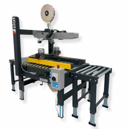 SIAT SK10 to półautomatyczna zaklejarka kartonów zaprojektowana do precyzyjnego i szybkiego zamykania pudełek taśmą klejącą. Urządzenie oferuje regulację szerokości taśmy i napięcia, solidną konstrukcję oraz prostą obsługę, zapewniając powtarzalną jakość zamknięcia dla różnych formatów kartonów.