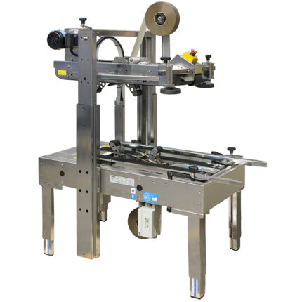 Półautomatyczna zaklejarka Random Tape 50 TBB to maszyna pakująca do zaklejania górnej i dolnej części kartonów klapowych taśmą samoprzylepną.