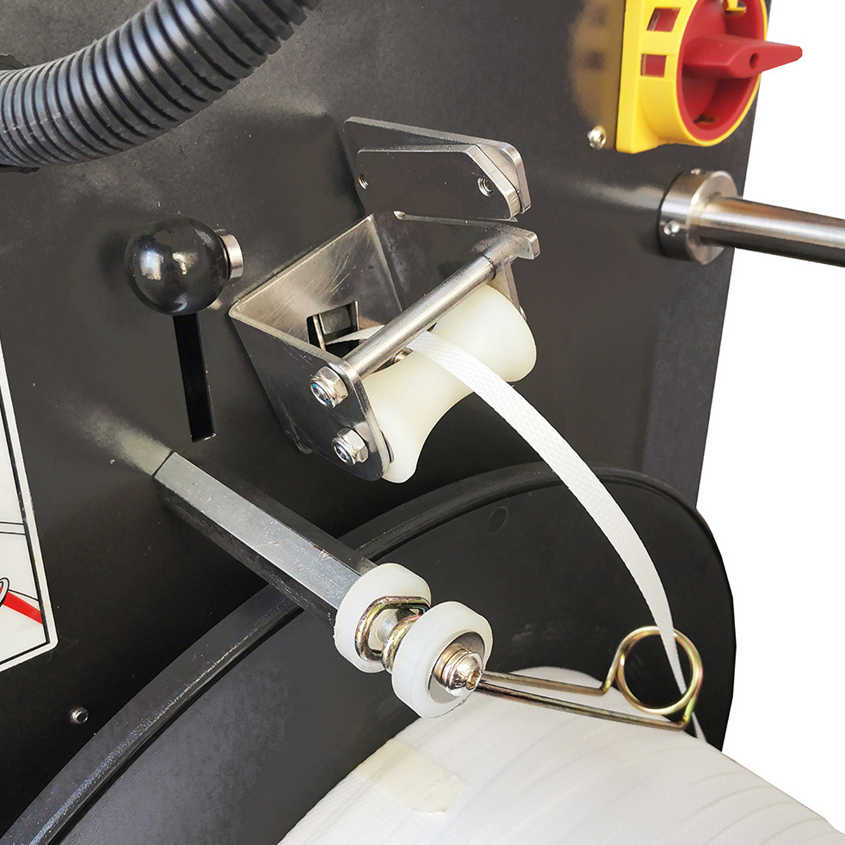 Obsługiwane są standardowe rolki taśmy PP o średnicy wewnętrznej 200 mm i zewnętrznej 400–450 mm.