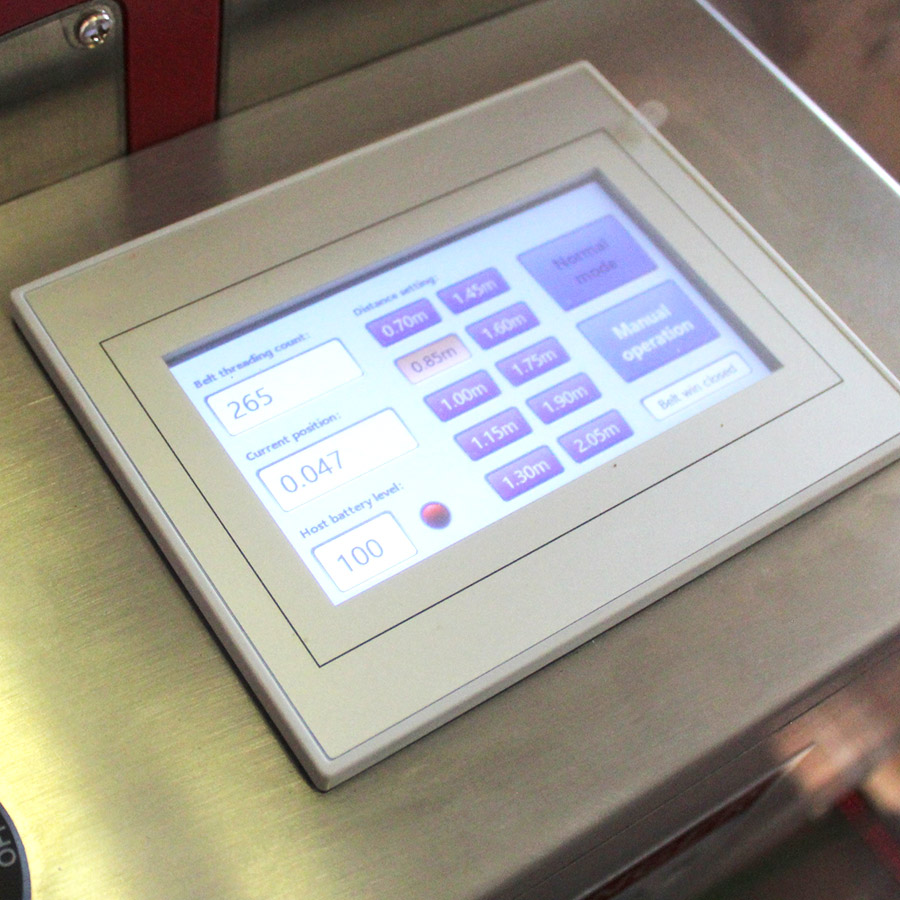 Napęd akumulatorowy oparty jest na baterii o napięciu 36 V i pojemności 10 Ah, co umożliwia wykonanie do około 600 cykli bandowania na jednym pełnym ładowaniu. Rozwiązanie to zwiększa elastyczność zastosowania bandownicy oraz pozwala na jej użytkowanie w miejscach bez dostępu do stałego zasilania elektrycznego. Panel sterowania z joystickiem umożliwia intuicyjne sterowanie wysuwem lancy oraz uruchamianie cyklu spinania. Konstrukcja urządzenia została opracowana z myślą o ergonomii pracy operatora.
