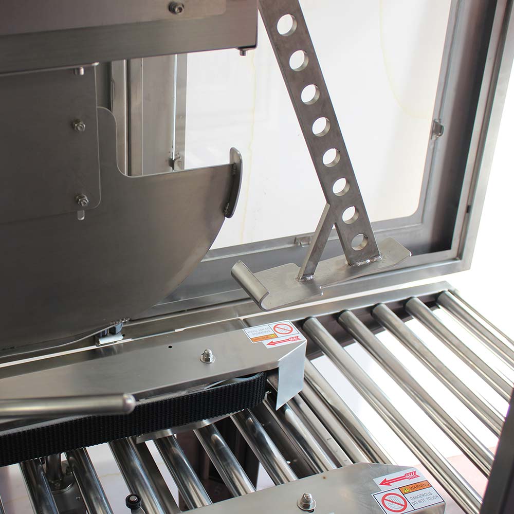 Auto Tape 50 CF SS została zaprojektowana z uwzględnieniem zasad bezpieczeństwa maszyn. Konstrukcja z rolkowymi przenośnikami oraz zabezpieczenia PLC umożliwiają bezpieczną pracę bez konieczności stałej obecności operatora. Intuicyjne sterowanie oraz czujniki wykrywania stanu taśmy zwiększają niezawodność procesu pakowania i ułatwiają obsługę urządzenia w codziennej eksploatacji.