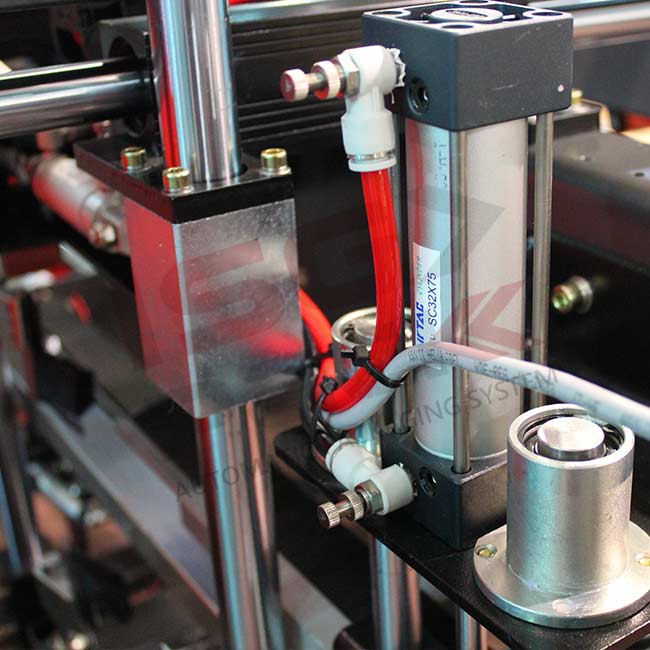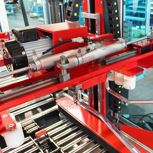 Mechanizmy zamykania i napędy są pneumatyczne, a sterowanie elektroniczne odbywa się przez panel PLC.
