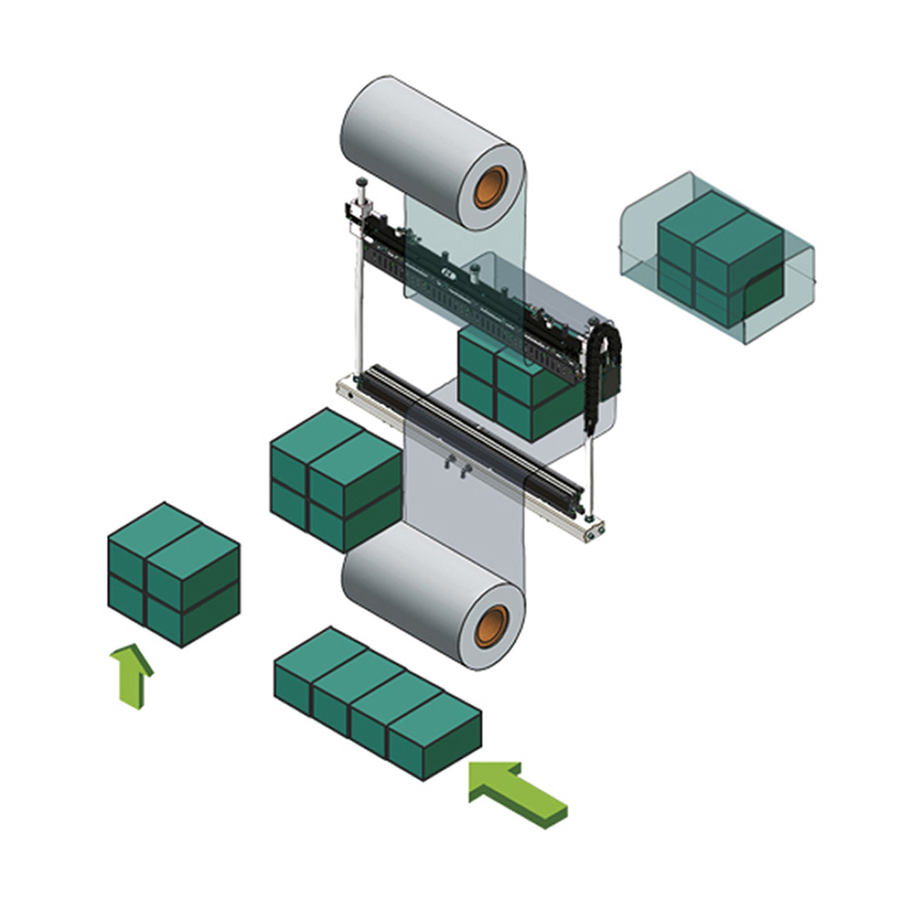 Maszyna znajduje zastosowanie w pakowaniu produktów spożywczych, chemicznych, kosmetycznych i logistycznych, gdzie estetyka i stabilność pakietów są kluczowe przy transporcie oraz magazynowaniu. Dzięki automatycznemu grupowaniu produktów przed zgrzewaniem powstają zwarte, równomierne pakiety gotowe do wysyłki.
