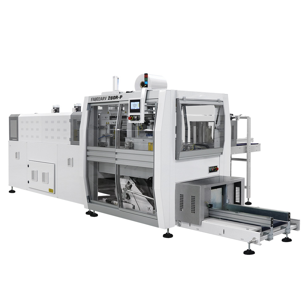 FA802ARV 280R‑P posiada motoryzowane rozwijaki folii górne i dolne sterowane falownikami, co zapewnia stabilne prowadzenie materiału opakowaniowego i minimalizuje ryzyko poślizgu podczas cyklu pakowania. Przenośnik tunelu obkurczającego wykonany jest z włókna szklanego o wysokiej odporności na temperaturę, co zwiększa stabilność procesu i trwałość komponentów.