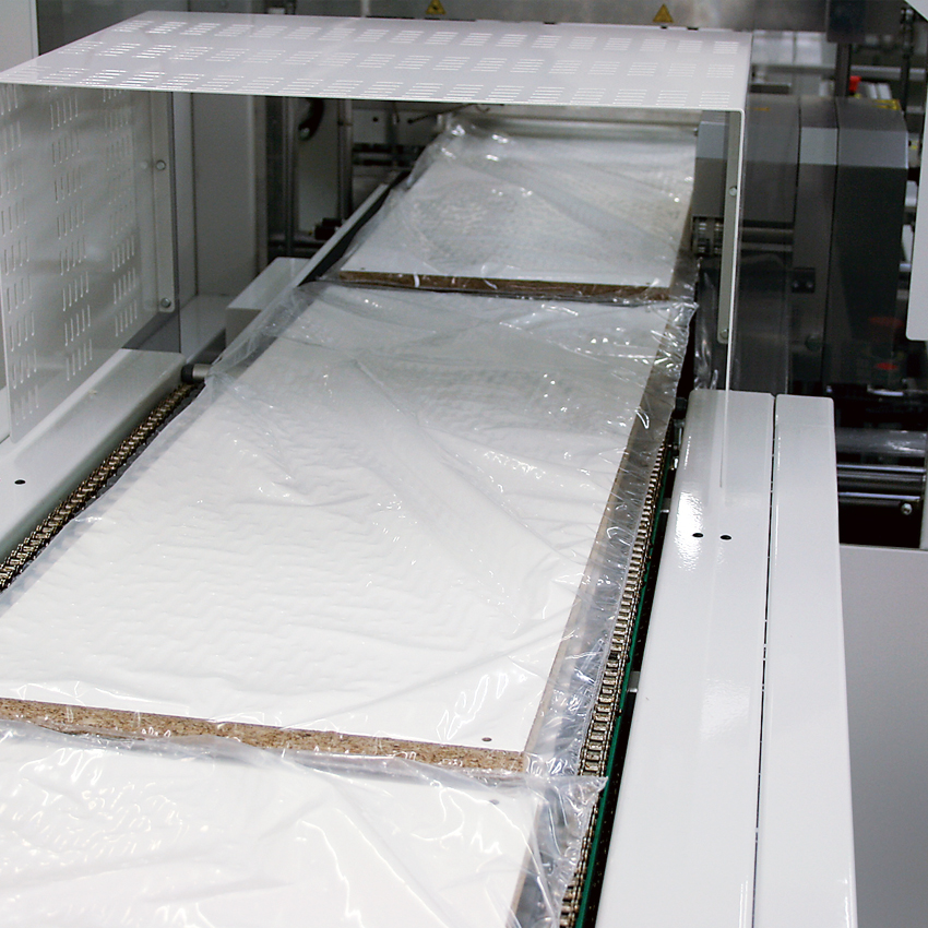 Proces pakowania w automatycznej zgrzewarce kątowej Ultra Sealer 80 SM rozpoczyna się od transportu produktu na napędzanym pasie przenośnika wejściowego, który doprowadza pakunek do strefy pracy urządzenia. System detekcji produktu uruchamia cykl pakowania, co eliminuje konieczność ręcznego aktywowania maszynowego procesu przez operatora. Folia termokurczliwa jest następnie rozwijana i formowana wokół produktu, a listwy zgrzewające o długości 800 mm wykonują zgrzew kątowy, zapewniając trwałe i szczelne połączenie materiału foliowego. Listwy zgrzewające pokryte są powłoką PTFE, co ogranicza przywieranie folii do powierzchni roboczych i ułatwia utrzymanie strefy zgrzewania w czystości oraz konserwację elementów zgrzewających. W efekcie otrzymuje się stabilne, jednolite i estetyczne pakunki, przygotowane do dalszego etapu procesu, takiego jak obkurczanie w tunelu lub bezpośrednia faza transportowa.