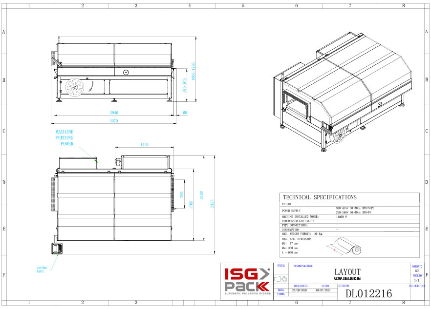 Automatyczna zgrzewarka kątowa Ultra Sealer 80 SM to urządzenie pakujące do folii termokurczliwej, w szczególności poliolefin oraz polietylenu. Maszyna realizuje pełny cykl pakowania w trybie automatycznym, obejmujący podanie produktu, rozwijanie folii, zgrzew kątowy oraz odprowadzenie gotowego pakunku. Obszar zgrzewania obsługiwany jest przez belki o długości 800 mm, co umożliwia pakowanie produktów o maksymalnej wysokości do 300 mm. Technologia zgrzewania ciągłego pozwala na stabilne i płynne pakowanie produktów o znacznej długości. Automatyczna zgrzewarka kątowa Ultra Sealer 80 SM przeznaczona jest do intensywnej i ciągłej pracy w liniach pakujących o dużej wydajności.