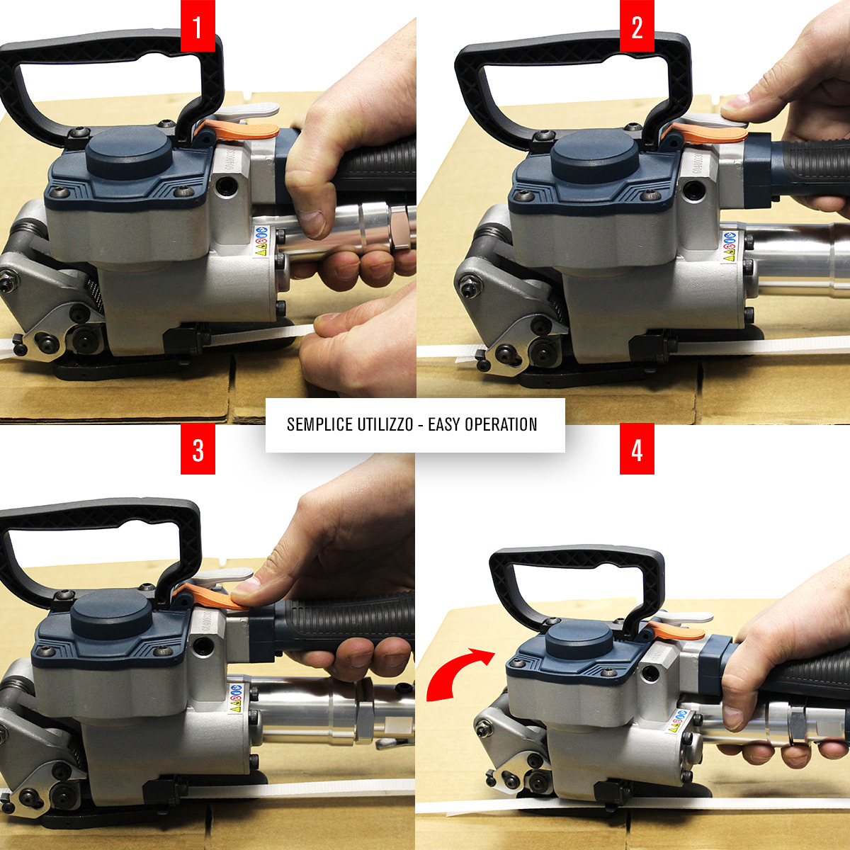 Urządzenie może być używane do spinania zarówno pojedynczych opakowań, jak i większych pakietów. Siła napinania i zakres zgrzewania zapewniają stabilność spinania podczas transportu i składowania. Bandownica umożliwia pracę z różnymi typami pakunków płaskich i lekkich palet, w tym kartonów, skrzyń i pakietów zbiorczych.