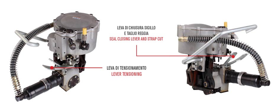 Bandownica Ares 19‑32 PN obsługuje taśmy stalowe o szerokości 19 mm, 25 mm i 32 mm, zgodne ze standardami przemysłowymi. Taśmy stalowe stosowane z tym narzędziem mają grubość od 0,8 mm do 1,2 mm, co pozwala na dostosowanie siły naciągu i wytrzymałości połączenia do specyfiki zabezpieczanego ładunku. Proces spinania zaczyna się od umieszczenia końcówek taśmy wokół opakowania i wprowadzenia ich do prowadnic bandownicy. Pneumatyczny mechanizm podnosi rolkę taśmy, co ułatwia jej prawidłowe umieszczenie w urządzeniu. Po umieszczeniu taśmy operator uruchamia cykl pracy, w którym następuje napinanie, zgrzewanie przez podwójne nacięcie i obcięcie taśmy. Podwójne nacięcie zapewnia wysoką odporność mechaniczną połączenia, zwiększając trwałość i niezawodność zamknięcia w warunkach transportowych.