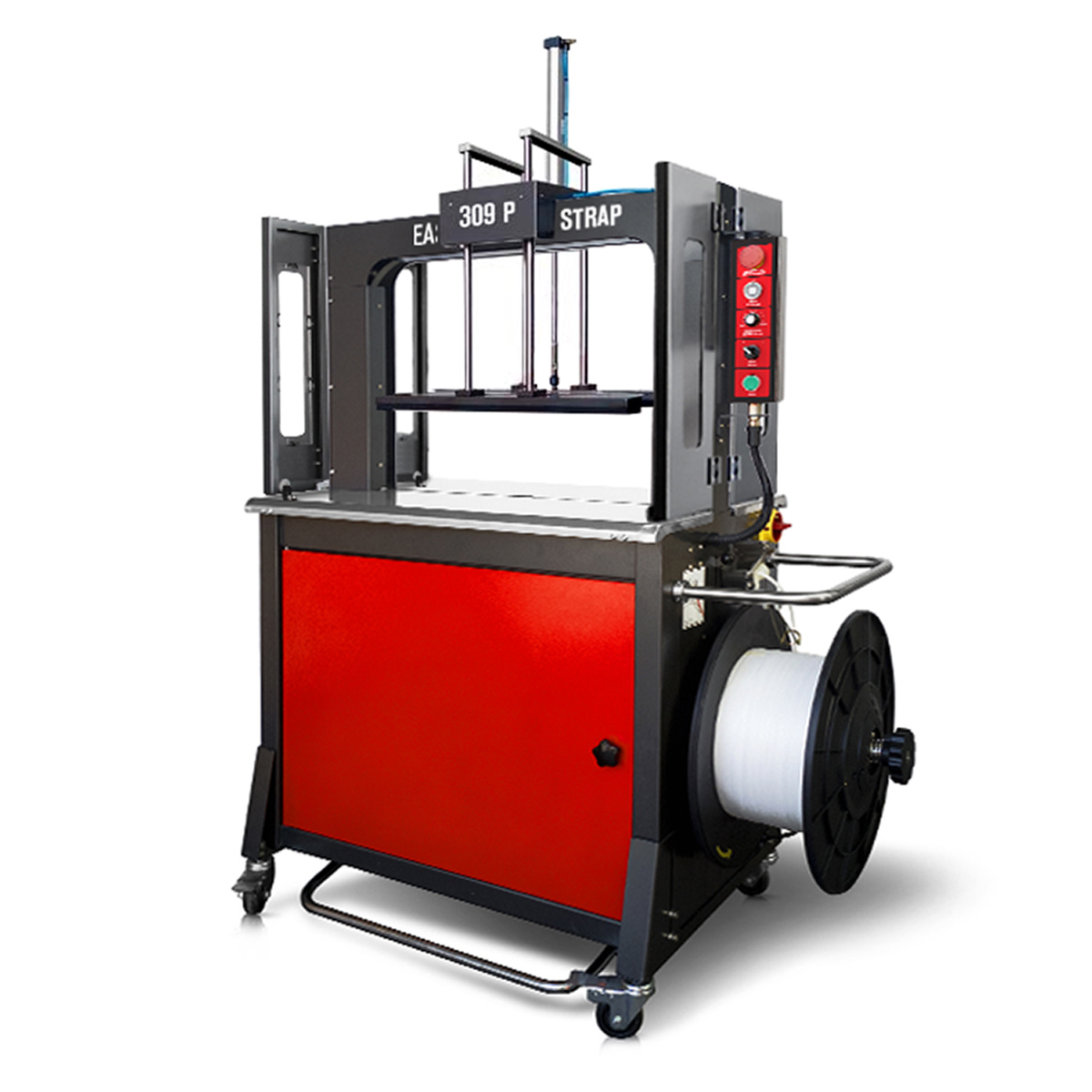 Bandownica ramowa wiązarka PP 309P/312P to urządzenie do spinania paczek taśmami 9 mm (309P) i 12 mm (312P) z wbudowaną prasą dociskową.