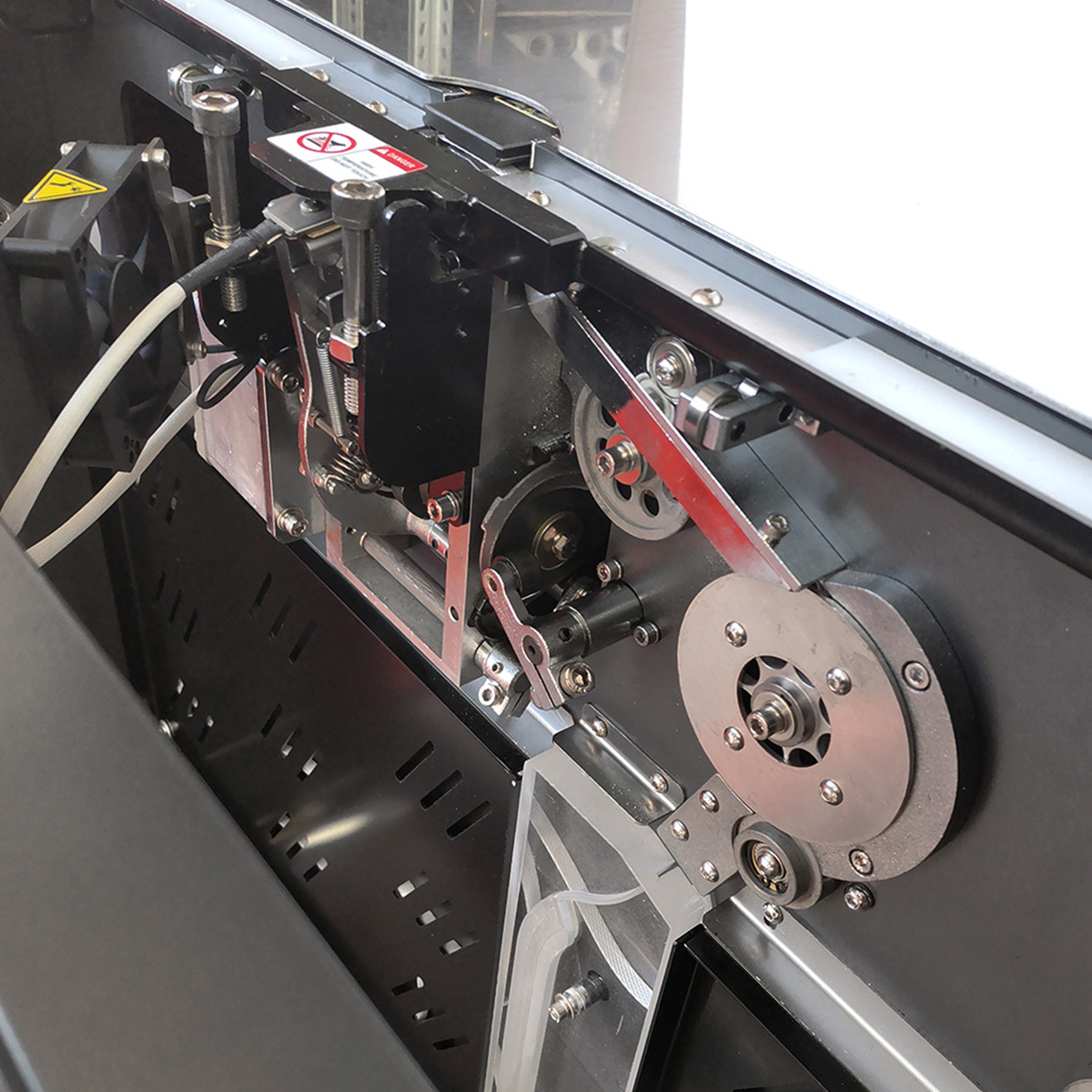 Maszyna jest solidnie wykonana z wysokiej jakości komponentów mechanicznych i elektronicznych, co zapewnia niezawodną pracę nawet w trudnych warunkach przemysłowych.