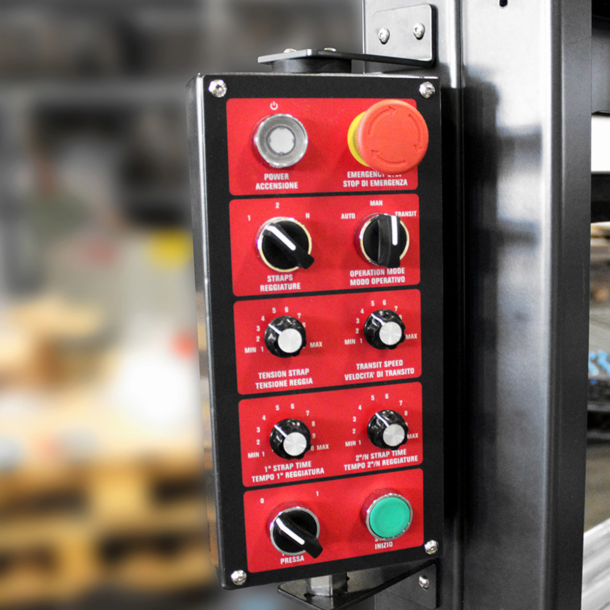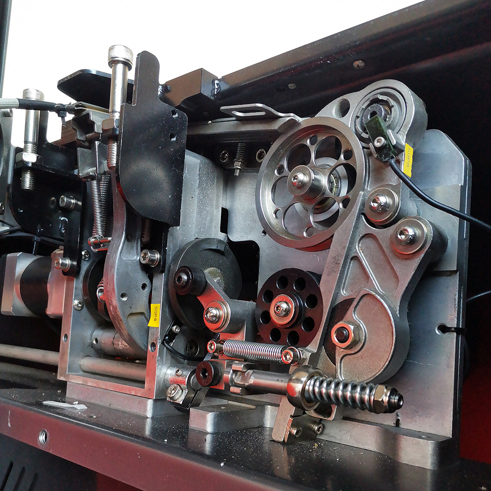 Maszyna wykonuje wiązania pojedyncze lub podwójne, a siła naciągu taśmy jest regulowana do maksymalnie 45 kg.