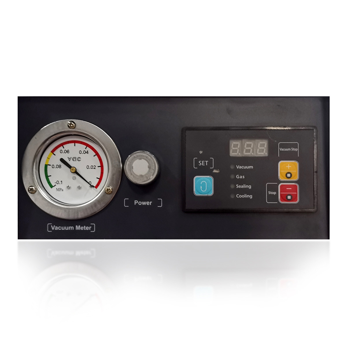 Eco Vac 300S TB wyposażona jest w panel sterowania umożliwiający regulację najważniejszych parametrów cyklu pakowania. Operator może ustawić czas wykonywania próżni w komorze, czas zgrzewania oraz czas chłodzenia zgrzewu, co pozwala dopasować proces do rodzaju pakowanych materiałów oraz grubości używanych worków. Ponadto panel sterowania posiada licznik cykli pracy, który umożliwia monitorowanie ilości wykonanych operacji i planowanie pracy urządzenia.