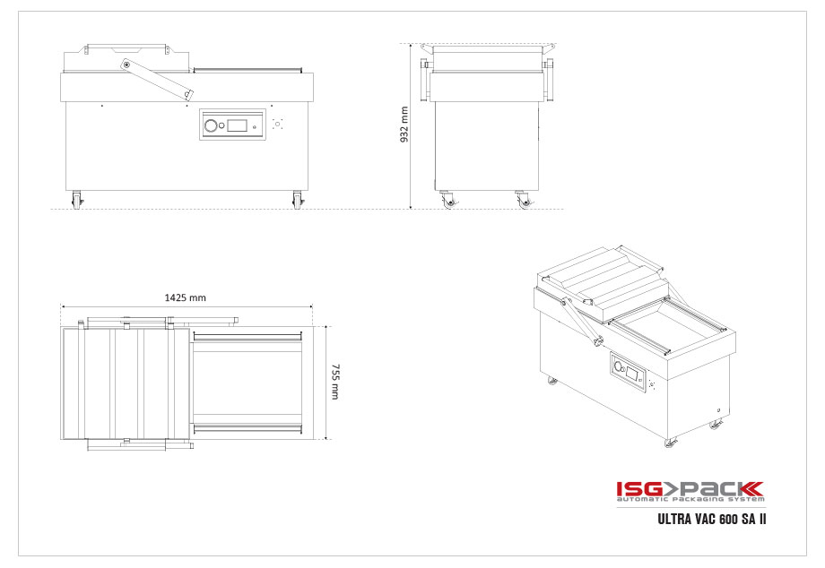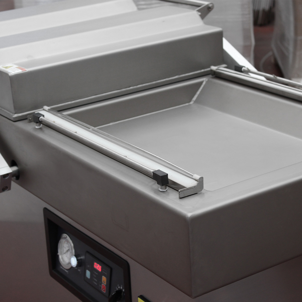 Pakowarka posiada komorę z przesuwaną pokrywą, co ułatwia dostęp do komory i operacje pakowania. Cztery listwy zgrzewające o długości 600 mm umożliwiają szczelne zamknięcie worków próżniowych. Pompa próżniowa o wydajności 63 m³/h zapewnia szybkie wytwarzanie próżni w komorze, co skraca czas pojedynczego cyklu pracy. Konstrukcja ze stali nierdzewnej zwiększa trwałość maszyny i ułatwia utrzymanie higieny w zakładzie produkcyjnym.
