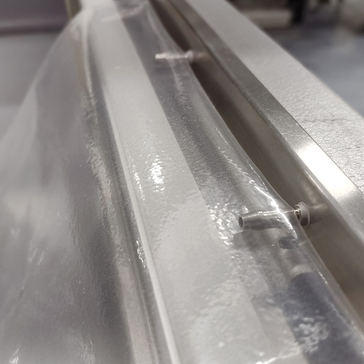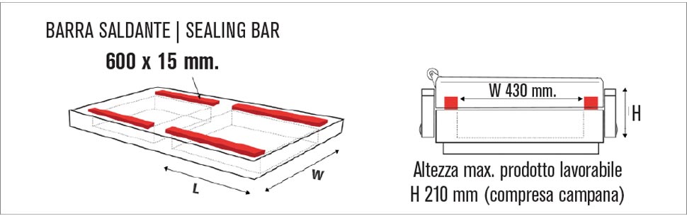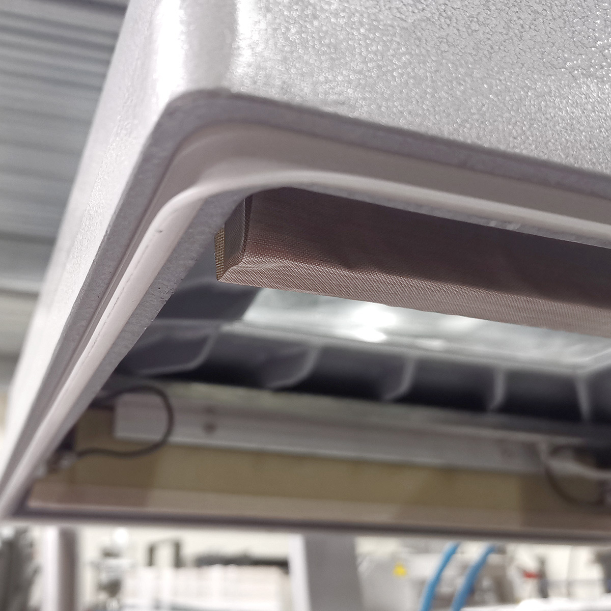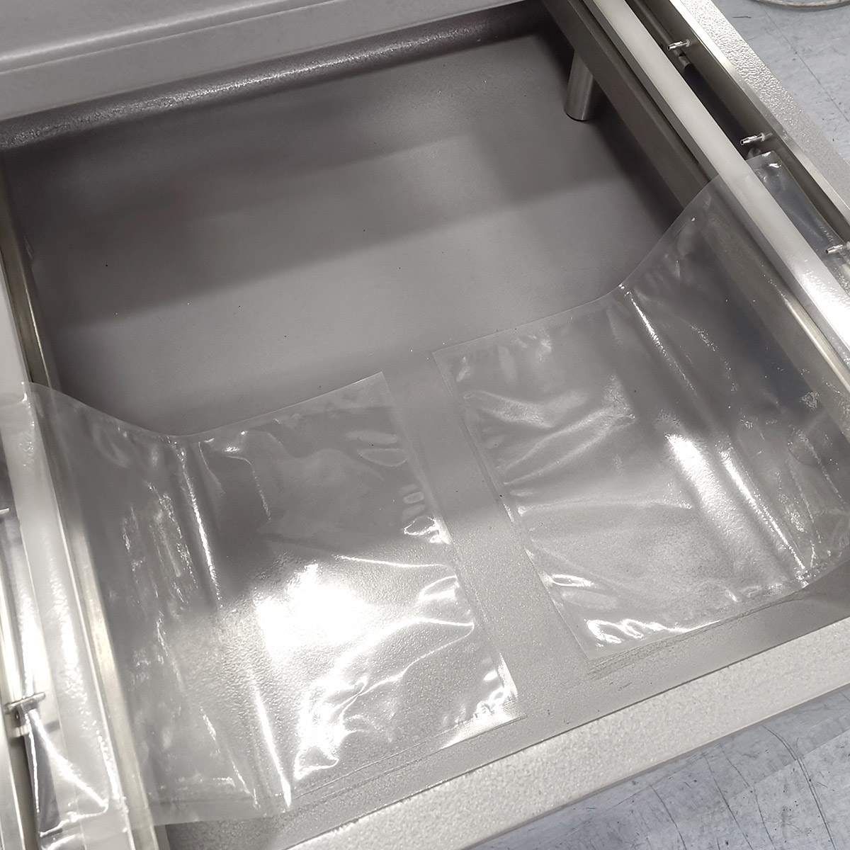 Wyposażona jest w cztery listwy zgrzewające, które zapewniają szczelne zamykanie worków po usunięciu powietrza z komory.