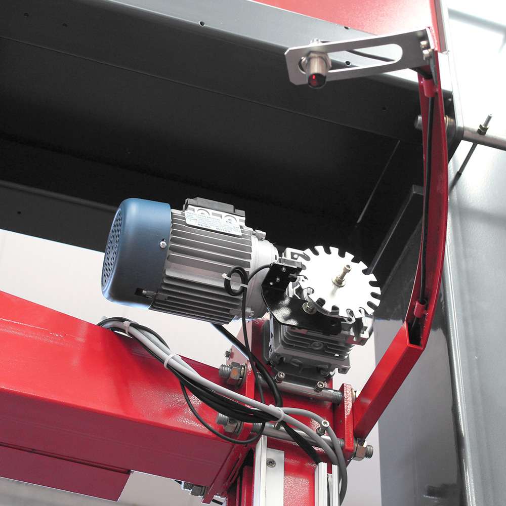Rotary Wrap 2300 B wyposażony jest w motorized pre‑stretch folii stretch z przełożeniami 100%, 150%, 200% i 250%, które można zmieniać manualnie poprzez wymianę odpowiednich mechanizmów. System ten zwiększa wydajność wykorzystania folii i poprawia stabilność pakowania, co jest ważne przy ładunkach o różnej masie i kształcie. Regulacja napięcia folii odbywa się z poziomu panelu sterowania, co pozwala dopasować siłę owijania do specyfiki pakowanego ładunku.