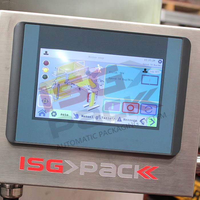 Pionowa maszyna pakująca Matic Vert 520 CS CP 4H jest urządzeniem automatycznym przeznaczonym do pakowania produktów metodą zgrzewania przerywanego. Konstrukcja wykonana ze stali nierdzewnej zapewnia odporność na warunki przemysłowe oraz umożliwia łatwe czyszczenie i konserwację. Sterowanie maszyny realizowane jest za pomocą przemysłowego PLC z ekranem dotykowym, co pozwala na regulację parametrów pracy i zapis programów pakowania. Urządzenie wyposażone jest w cztery serwomotory synchronizujące ruchy mechanizmów formujących i transportujących folię, co zapewnia precyzyjne działanie.