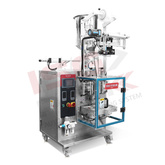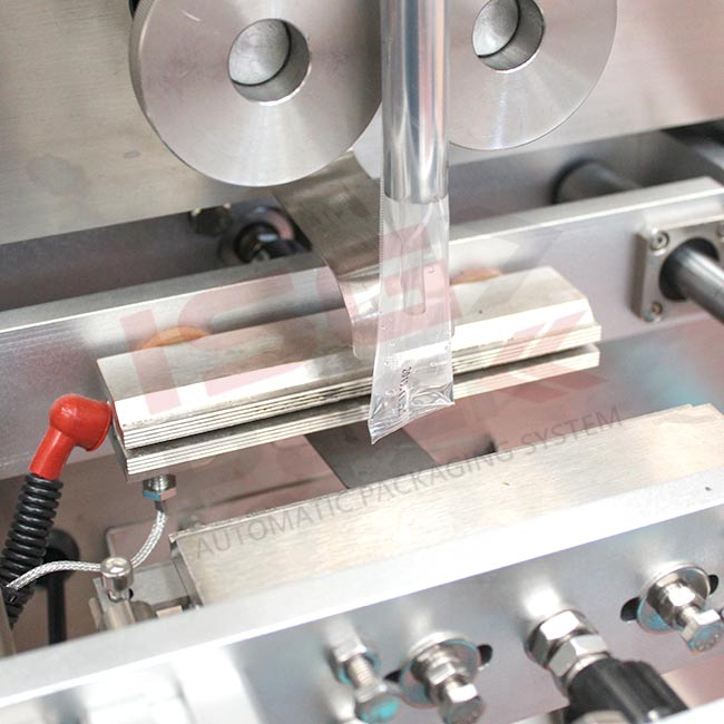 Proces pakowania rozpoczyna się od podawania produktu płynnego lub żelowego do układu dozującego. Następnie folia opakowaniowa jest formowana w strukturę pionową. Produkt jest wprowadzany do wnętrza formującej się saszetki przez układ pompy tłokowej, która reguluje ilość napełnienia w zakresie od 3 ml do 20 ml. Po napełnieniu folia jest zgrzewana i cięta w celu oddzielenia gotowej saszetki od kolejnych formowanych opakowań. Maszyna umożliwia wykonywanie zgrzewów gładkich lub zygzakowatych w zależności od potrzeb produkcyjnych.