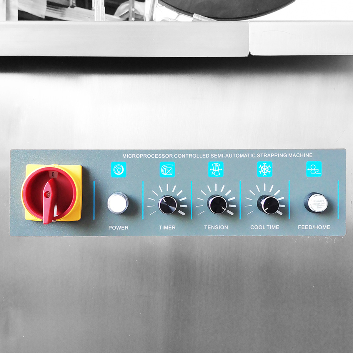 Bandownica Eco Strap 501 YSS jest zasilana z sieci elektrycznej 220 V, jednofazowej przy częstotliwości 50/60 Hz, o mocy zainstalowanej 0,35 kW, co zapewnia stabilną pracę mechanizmów spinających w typowych instalacjach przemysłowych i magazynowych. Silniki prądu stałego, z których każdy odpowiada za odrębną funkcję mechanizmu, pracują wyłącznie w cyklu spinania, co przyczynia się do obniżenia zużycia komponentów i zwiększenia efektywności energetycznej. Panel sterowania analogowy umożliwia operatorowi regulację najważniejszych parametrów pracy: siły naciągu taśmy, temperatury ostrza zgrzewającego, czasu chłodzenia po zgrzewaniu (COOL TIME) oraz długości reggii do podania. Taka regulacja parametrów pozwala dopasować pracę maszyny do różnych scenariuszy pakowania.