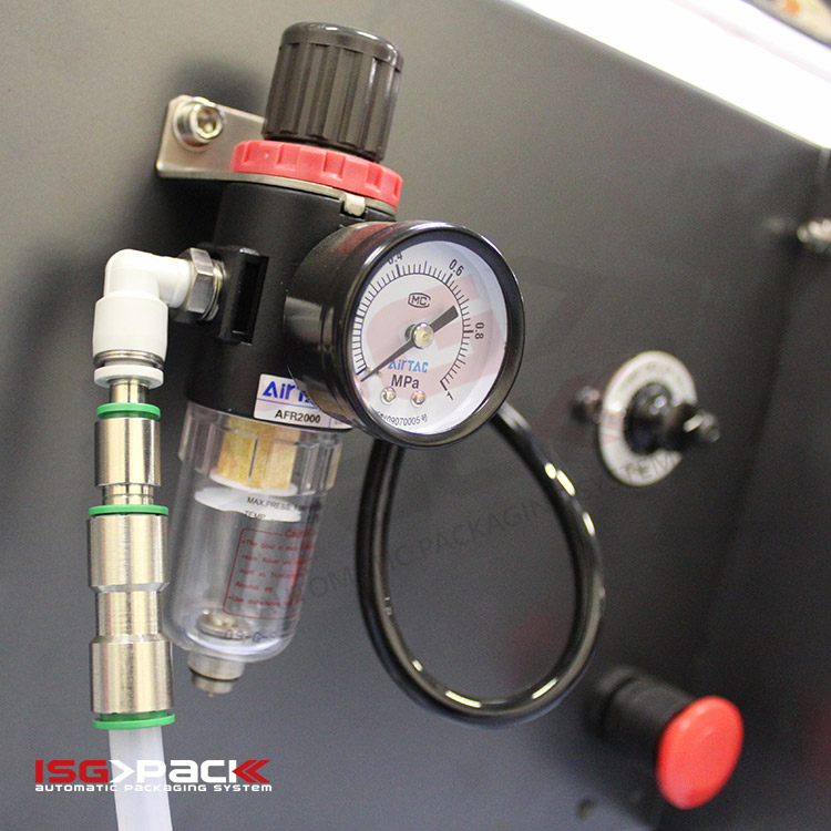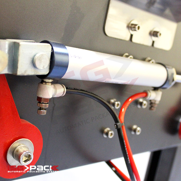Transport kartonu odbywa się ręcznie, a napęd pneumatyczny zagniecenia klap aktywuje się po wprowadzeniu opakowania.