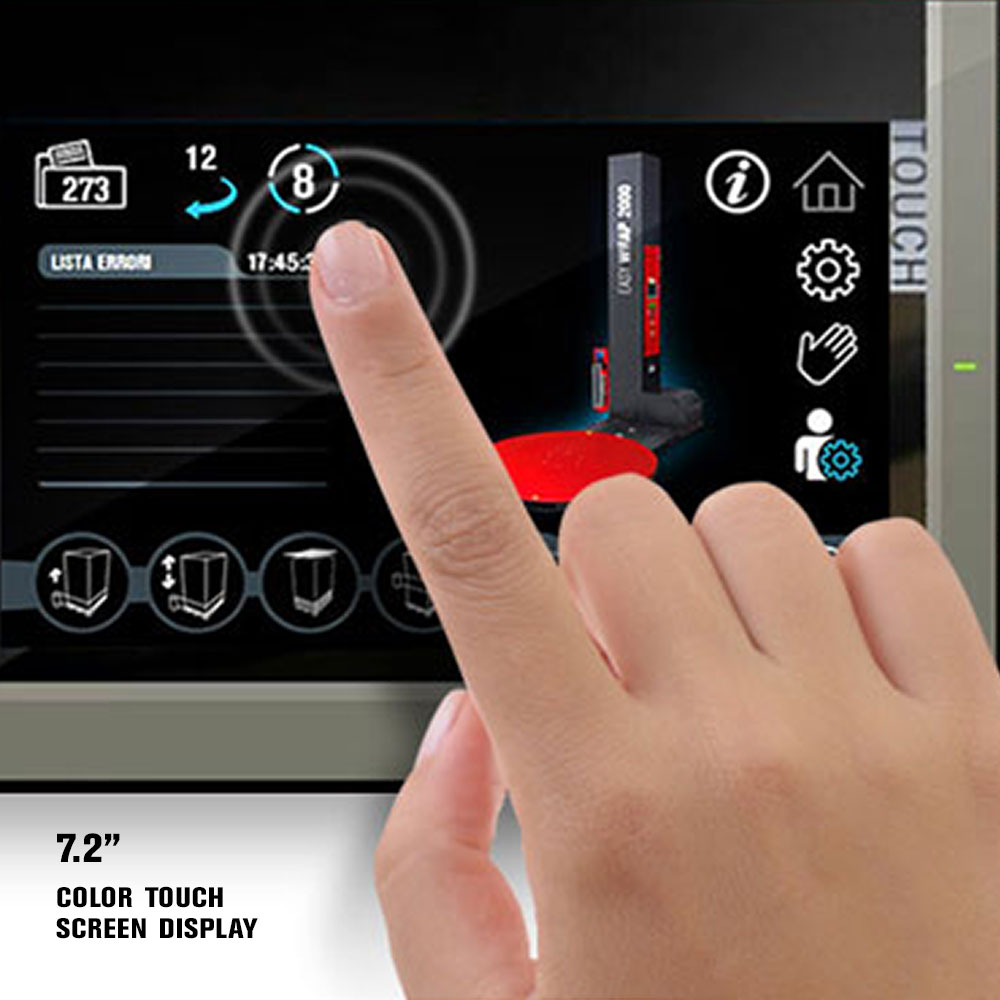 Maszyna została wyposażona w ergonomiczny panel dotykowy o przekątnej 7,2″, który współpracuje z kontrolerem PLC. Panel umożliwia intuicyjne ustawienie wszystkich parametrów cyklu owijania, takich jak liczba obrotów talerza, prędkość podnoszenia i opuszczania wózka folii, liczba cykli owijania czy opóźnienia odczytu fotokomórki. Panel pozwala na zapisanie do 10 programów pracy, co znacznie przyspiesza konfigurację urządzenia przy różnych typach ładunków.