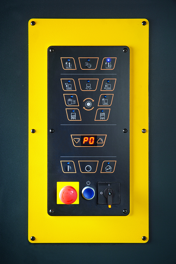 Owijarka została wyposażona w programowalny panel sterowania z czytelnymi ikonami i ekranem, który umożliwia precyzyjne ustawienie parametrów cyklu owijania. Operator może zapisać wiele programów pracy, co znacząco skraca czas konfiguracji przy zmianie rodzaju ładunku. Panel pozwala na wybór spośród kilku trybów pracy, takich jak automatyczne owijanie tylko w górę, automatyczne owijanie w górę i w dół, cykl z zatrzymaniem na górze palety oraz tryb manualny, dający pełną kontrolę nad procesem.