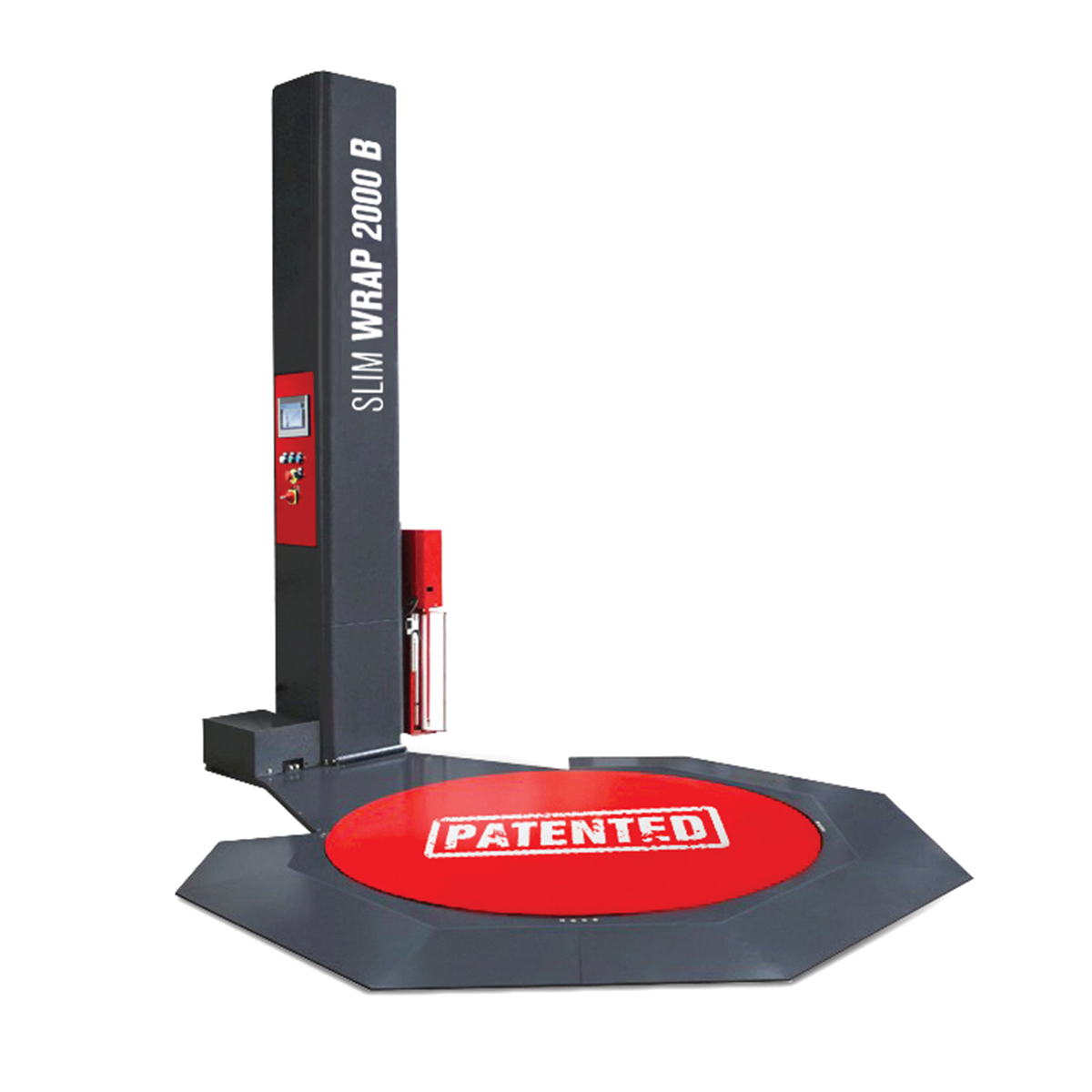 Slim Wrap 2000 B to półautomatyczna owijarka palet przeznaczona do stabilnego zabezpieczania ładunków folią stretch. Urządzenie wyposażone jest w bardzo niski talerz obrotowy, co umożliwia łatwy załadunek palet przy użyciu wózka paletowego. Nowoczesny panel sterowania pozwala na precyzyjne ustawienie parametrów owijania, zapewniając powtarzalność i bezpieczeństwo pakowania. Maszyna idealnie sprawdza się w magazynach, centrach logistycznych oraz zakładach produkcyjnych.