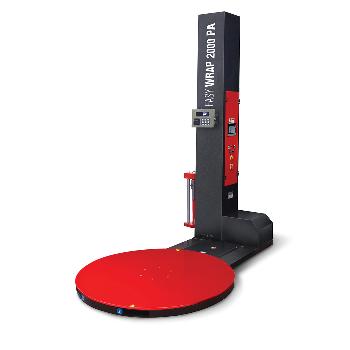 Półautomatyczna owijarka palet Easy Wrap 2000 PA jest nowoczesnym urządzeniem pakującym zaprojektowanym do owijania ładunków na paletach folią stretch z dodatkowym **systemem ważenia ładunku** wbudowanym w talerz obrotowy. System ważenia składa się z sześciu czujników tensometrycznych oraz cyfrowego wyświetlacza masy, co pozwala na precyzyjną kontrolę wagi produktu zarówno przed, jak i po procesie owijania. Easy Wrap 2000 PA łączy funkcje pakowania i ważenia, co usprawnia procesy logistyczne, kontrolę jakości i przygotowanie palet do transportu.
