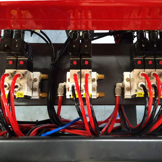 Regulacja formatu jest manualna, a ciśnienie oraz kontrola procesu odbywają się przez panel sterowania z PLC.