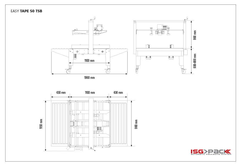 Półautomatyczna zaklejarka Easy Tape 70 TSB to urządzenie pakujące zaprojektowane do zamykania górnej i dolnej części dużych kartonów klapowych typu amerykańskiego przy użyciu taśmy samoprzylepnej. Maszyna jest przeznaczona do pracy w środowiskach pakowania, gdzie obsługiwane są opakowania o większych wymiarach, a stabilność i powtarzalność procesu pakowania są kluczowe. Konstrukcja urządzenia łączy prostotę obsługi z solidną budową, co pozwala na efektywne pakowanie dużych kartonów bez konieczności skomplikowanej regulacji parametrycznej urządzenia.