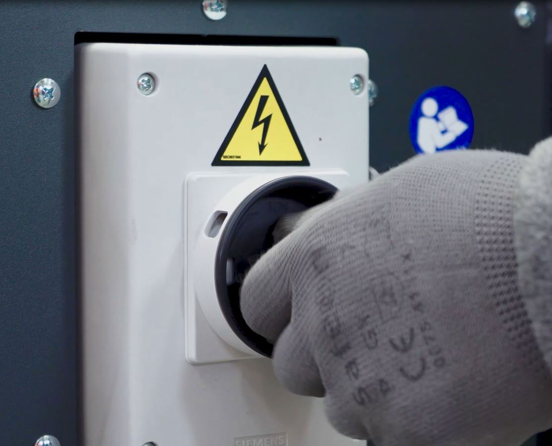Solidna konstrukcja oraz zabezpieczenia, takie jak blokowalny wyłącznik oraz przyciski awaryjne, poprawiają bezpieczeństwo obsługi.