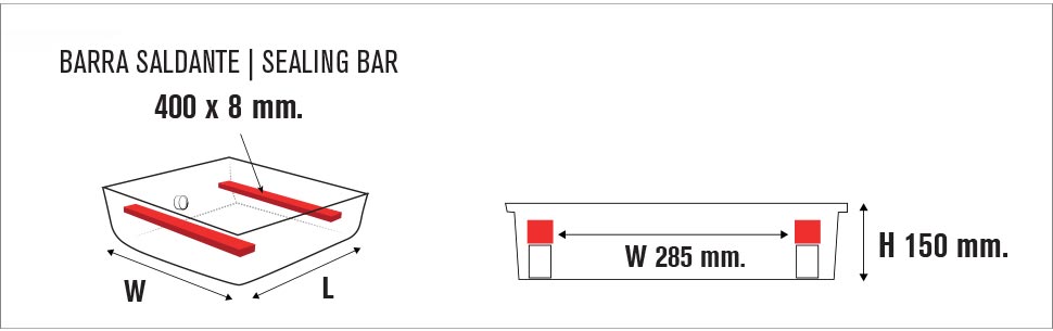 Pakowarka posiada komorę pakującą o wymiarach 400 × 360 × 200 mm, co pozwala na umieszczanie produktów o średnich i większych gabarytach wewnątrz urządzenia. Wewnątrz komory znajduje się jedna listwa zgrzewająca, która odpowiada za szczelne i trwałe zamknięcie worków próżniowych po usunięciu powietrza z komory. Komora oraz elementy robocze wykonane są z materiałów odpornych na wpływy środowiskowe, co ułatwia utrzymanie urządzenia w czystości i zwiększa jego żywotność.