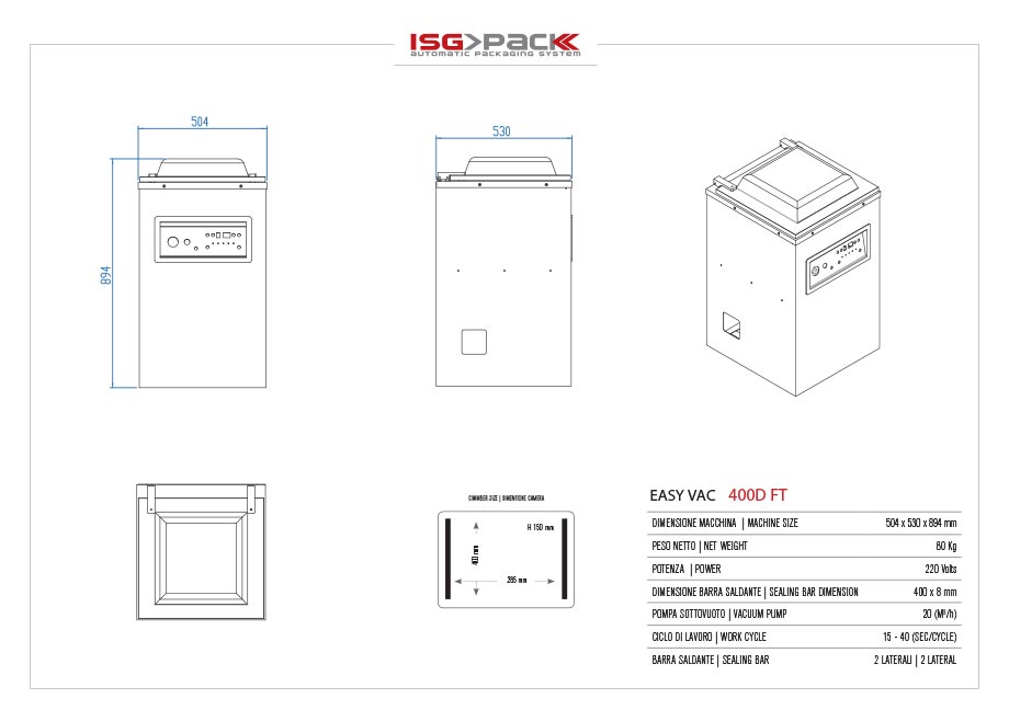 Easy Vac 400D FT wyposażona jest w panel sterowania, który umożliwia operatorowi regulację najważniejszych parametrów pracy. Panel sterowania pozwala ustawić czas trwania procesu próżniowego, czas zgrzewania oraz czas chłodzenia zgrzewu, co umożliwia dostosowanie cyklu pakowania do rodzaju pakowanych materiałów oraz grubości używanej folii opakowaniowej. Panel posiada również licznik cykli pracy, który ułatwia monitorowanie intensywności eksploatacji urządzenia i planowanie pracy.