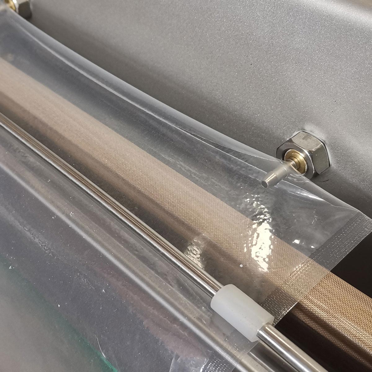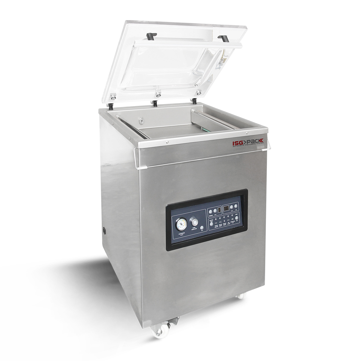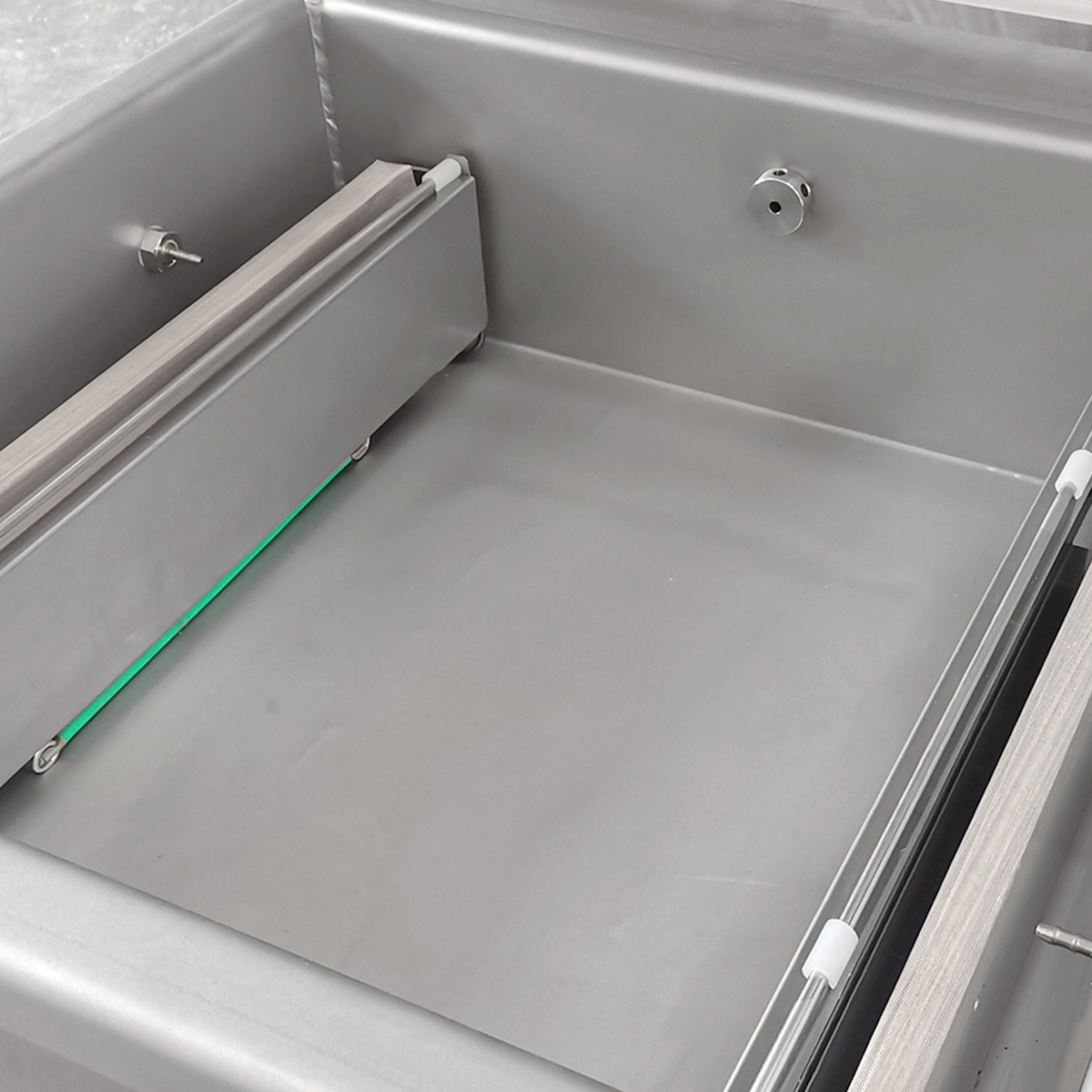 Pakowarka posiada komorę pakującą o wymiarach 500 × 450 × 200 mm, co pozwala na pakowanie produktów o dużych rozmiarach lub zestawów towarów w jednym cyklu pracy. Komora wyposażona jest w jedną listwę zgrzewającą o szerokości 8 mm, która odpowiada za trwałe i szczelne uszczelnienie worków próżniowych po usunięciu powietrza z komory. System oparty na konstrukcji z wysokiej jakości stali nierdzewnej zwiększa trwałość urządzenia i ułatwia jego czyszczenie oraz konserwację w środowisku produkcyjnym.