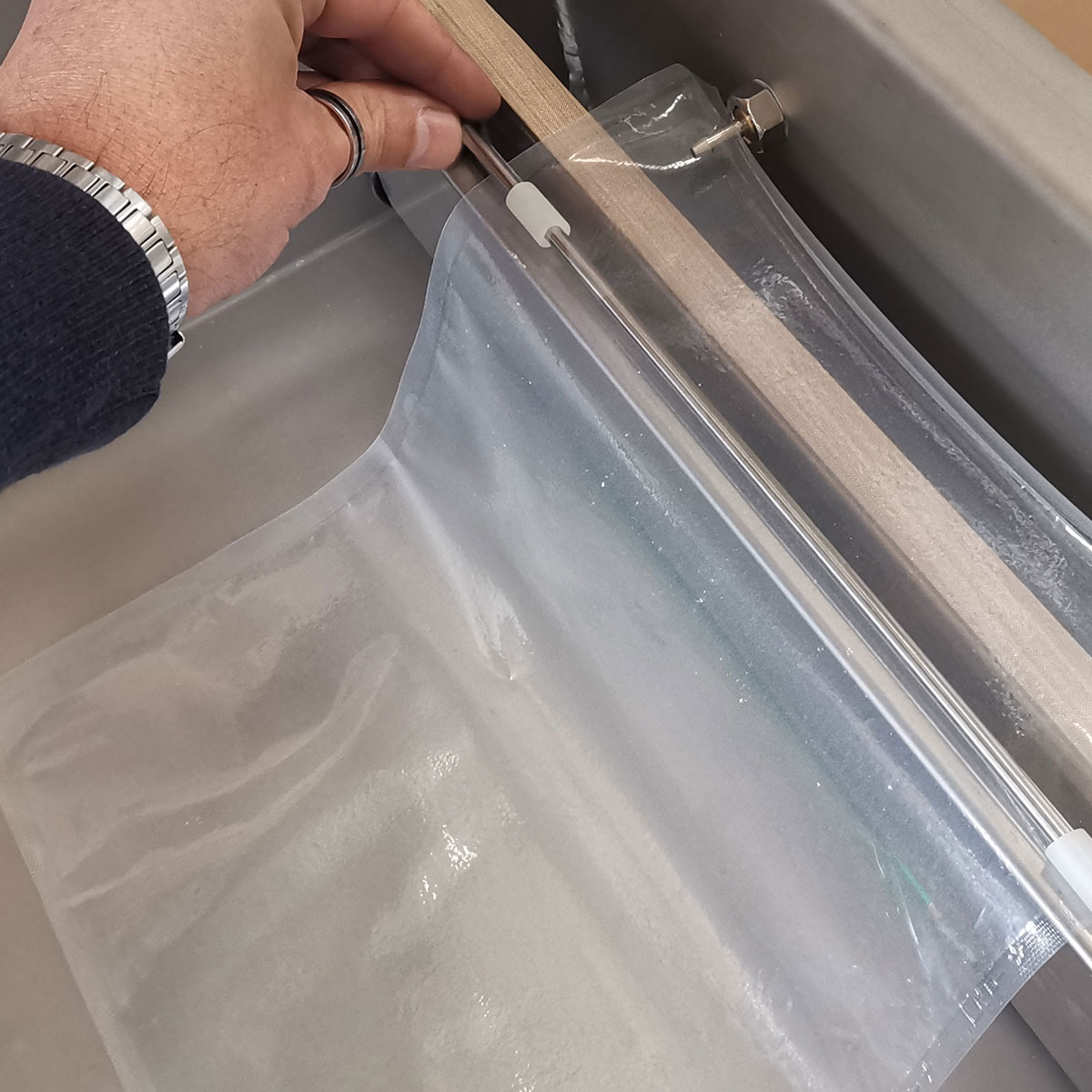 Proces pakowania w pakowarce Easy Vac 500D FT rozpoczyna się od umieszczenia otwartego worka z produktem wewnątrz komory oraz zamknięcia pokrywy. Po zamknięciu urządzenie realizuje cykl pracy, usuwając powietrze z komory i wnętrza worka, co redukuje zawartość tlenu oraz sprzyja wydłużeniu trwałości pakowanych materiałów. Po osiągnięciu zadanego poziomu próżni następuje automatyczne zgrzewanie worka na listwie zgrzewającej, zapewniając szczelne i trwałe połączenie. Faza chłodzenia po zgrzewaniu wzmacnia wytrzymałość połączenia, zanim operator otworzy komorę i wyjmie gotowy produkt.