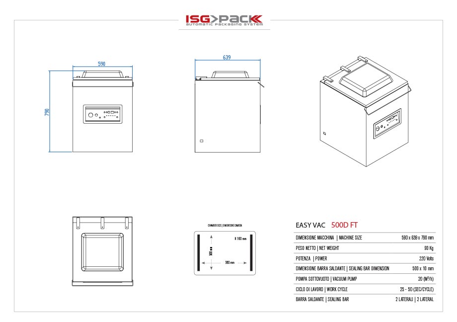 Easy Vac 500D FT jest wyposażona w panel sterowania, który umożliwia operatorowi ustawienie parametrów cyklu pakowania. Panel sterowania pozwala regulować czas trwania próżni, czas zgrzewania oraz czas chłodzenia, co umożliwia dopasowanie cyklu pakowania do rodzaju pakowanych materiałów oraz grubości folii opakowaniowej. Panel posiada również licznik cykli pracy, co ułatwia monitorowanie ilości wykonanych operacji oraz planowanie pracy urządzenia w warunkach przemysłowych.