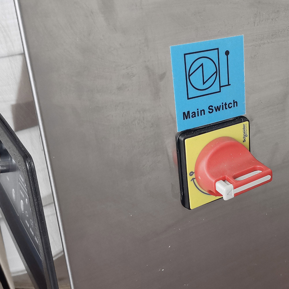 Maszyna wykonana jest w konstrukcji ze stali nierdzewnej, co zapewnia wysoką odporność na korozję i łatwość utrzymania higieny.