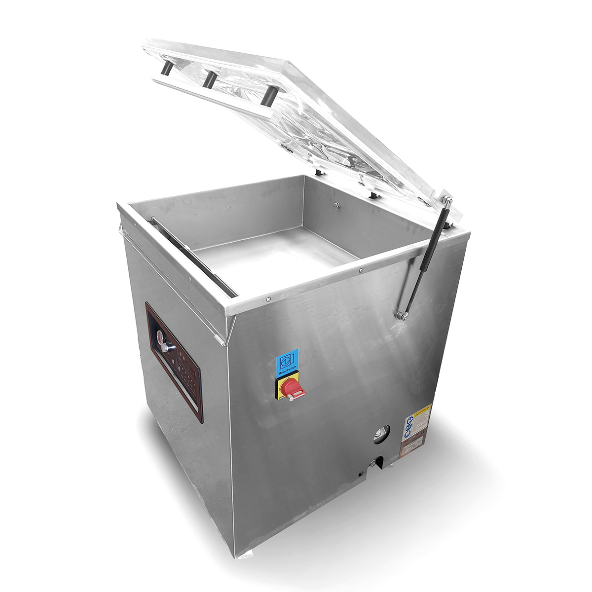 Pakowarka posiada komorę pakującą o wymiarach 600 × 450 × 200 mm, co pozwala na umieszczanie dużych produktów lub zestawów towarów w jednym cyklu pakowania. Wewnątrz komory znajduje się jedna listwa zgrzewająca o szerokości 8 mm, która odpowiada za trwałe i szczelne połączenie worków próżniowych po usunięciu powietrza z komory. Konstrukcja urządzenia wykonana ze stali nierdzewnej zwiększa jego trwałość i ułatwia utrzymanie w czystości oraz konserwację w środowisku przemysłowym.