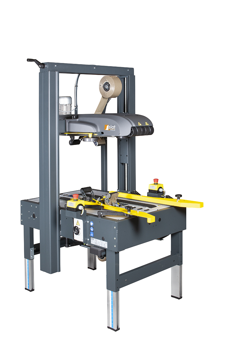 SIAT SK27 to półautomatyczna zaklejarka kartonów przeznaczona do stabilnego i powtarzalnego zamykania dużych opakowań taśmą klejącą. Urządzenie charakteryzuje się robustną konstrukcją, podwójnym systemem pasów napędowych oraz możliwością pracy z szerokim zakresem typów taśmy i rozmiarów kartonów. Model ten sprawdza się w zastosowaniach przemysłowych, logistycznych i magazynowych wymagających wysokiej wydajności pakowania.