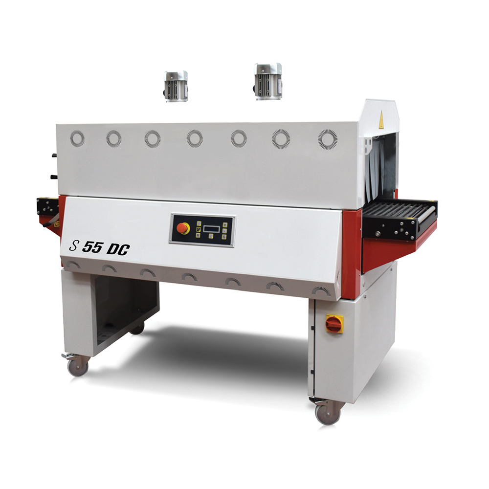 Tunel obkurczający S 55 DC to profesjonalny, dwukomorowy tunel termokurczliwy zaprojektowany do efektywnego obkurczania folii termokurczliwej wokół pakowanych produktów. Urządzenie przeznaczone jest do pracy w liniach pakujących wymagających wysokiej wydajności i precyzji procesu termokurczenia. Dzięki dwóm komorom obkurczania tunel umożliwia stopniowe i kontrolowane nagrzewanie oraz kurczenie się folii, co przekłada się na jednolite i stabilne efekty pakowania produktów o różnych kształtach i rozmiarach. Konstrukcja tunelu oraz zastosowane rozwiązania techniczne zapewniają stabilność procesu i możliwość dostosowania parametrów pracy do specyfiki folii oraz formatu pakowanych wyrobów.