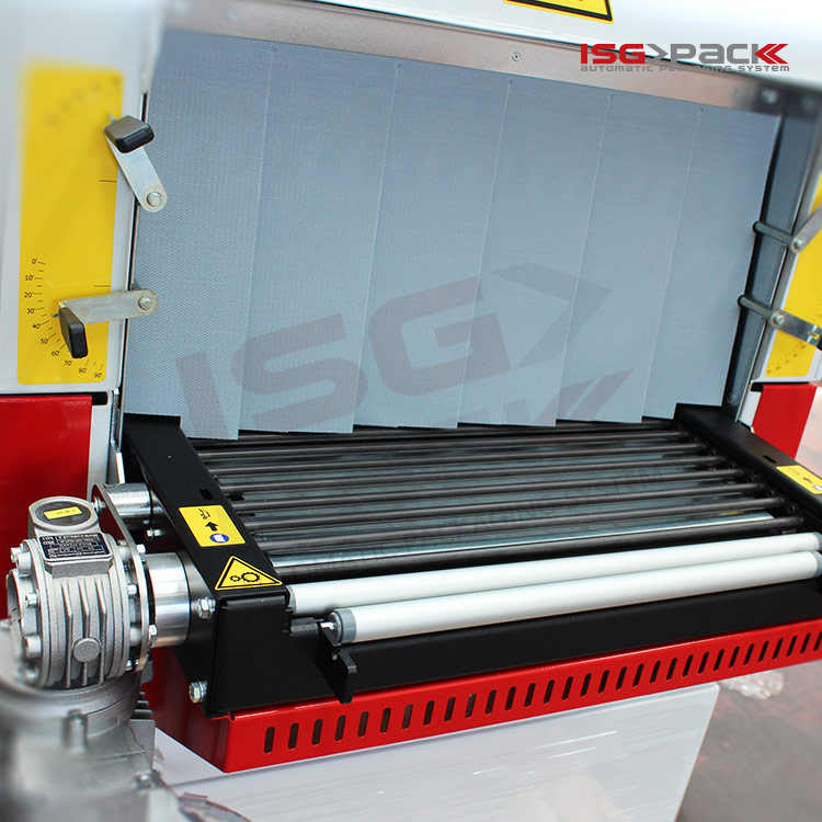 Maszyna obsługuje maksymalną wysokość produktu do 300 mm i oferuje regulowaną prędkość przenośnika taśmowego w zakresie dopasowanym do procesu obkurczania.