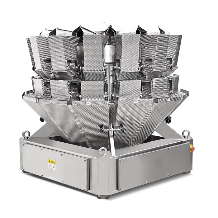 Waga wielogłowicowa MW 14 to urządzenie do precyzyjnego ważenia produktów sypkich i ziarnistych z wykorzystaniem 14 głowic wagowych. Konstrukcja maszyny wykonana jest według wysokich standardów jakości i może działać w środowisku suchym lub wilgotnym. Urządzenie posiada lejek odbiorczy oraz centralny stożek wibracyjny, który rozprowadza produkt do kanałów wibracyjnych. Ważenie odbywa się w koszykach wagowych umieszczonych na ogniwach wagowych. Panel sterowania z ekranem dotykowym 7 cali umożliwia programowanie i wybór trybów pracy.
