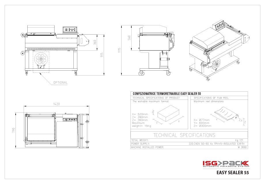 Easy Sealer 55 to zgrzewarka kloszowa przeznaczona do folii termokurczliwej z funkcją jednoczesnego zgrzewania i obkurczania. Urządzenie nie wykonuje samodzielnego naciągu ani cięcia folii – jego funkcja ogranicza się wyłącznie do zgrzewu folii i jej obkurczenia wokół produktu. Maszyna pracuje w mechanizmie kloszowym, w którym operator umieszcza produkt owinięty filmem i opuszcza klosz uruchamiając cykl pakowania. Sterowanie realizowane jest za pomocą panelu LCD z możliwością zapamiętania do 10 programów pracy. Easy Sealer 55 sprawdza się w małych i średnich przedsiębiorstwach produkcyjnych oraz handlowych, zapewniając powtarzalny proces pakowania.