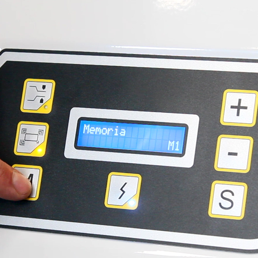 Panel sterowania LCD umożliwia operatorowi dokładne ustawienie parametrów cyklu, w tym temperatury zgrzewu, czasu obkurczania, sekwencji cyklu oraz czasu otwarcia klosza po zakończeniu cyklu. Funkcja zapisu programów pozwala na przechowywanie kilku ustawień dla różnych produktów, co przyspiesza zmianę parametrów i eliminuje konieczność ręcznej rekonfiguracji przy każdym pakowaniu. Dzięki temu operator może szybko i sprawnie przełączać się między różnymi produktami, zachowując powtarzalność pakunków i ich estetyczny wygląd. Cały proces realizowany jest automatycznie, a operator pełni rolę nadzorczą i kontrolną, co minimalizuje ryzyko błędów i zwiększa wydajność pracy.